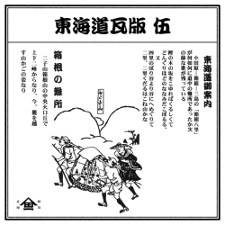 東海道御案内 東海道の宿駅の間は平均約二里十一丁で、長い所は小田原―箱根―三島の間は夫々(それぞれ)約四里で、「箱根八里」はこれを指している。 …続きを読む